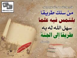 "عن أبى هريرة رضى الله عنه قال: قال رسول الله صلى الله عليه وآله وسلم: "من سلك طريقاً يلتمس فيه علماً سهل الله له طريقاً إلى الجنة" رواه مسلم.